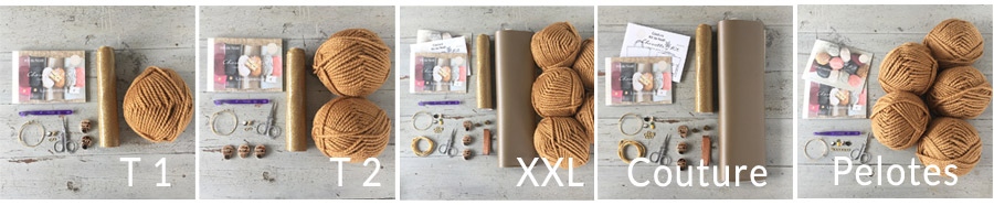 Les Kits XXL : (Ce kit contient le livret générique commun à tous les kits, le livret pour les grands projets pelotes ainsi que le que le patron pour un sac à main ou un cartable)