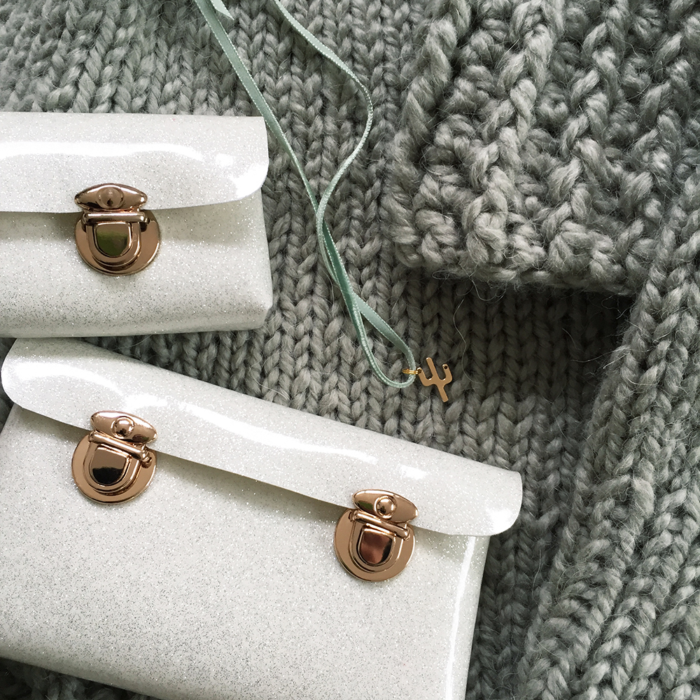 Dans ce kit Noël CK23 voici un beau fil, doux, joliment torsadé et assez gros pour réaliser en un temps record de belles choses, vraiment portables, carrément à la mode et rapides à faire, pour que les cadeaux soient à l’heure sous le sapin (combien serons-nous à réaliser un dernier snood ou un bonnet en plus sur le trajet du reveillon?… On se les montrera sur les réseaux ;-)). Noël ne va pas non plus sans “qui-brille”, sans précieux et sans jolies lumières, c’est dans cet esprit que nous avons ressorti le simili paillette que vous avez été nombreuses à nous réclamer, assorti d’une boucle-bijoux en or rose et toute ronde, la petite pochette est d’ailleurs un petit bijou en elle-même.