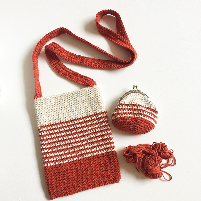 Un ensemble de nuit ou de plein été en fonction de la couleur du tissu, un gilet sans manches avec un travail de textures qui le rend très sympa à faire et facilite la progression, ou le choix entre un sac seau travaillé d’une bonne taille pour accompagner les balades de cet été ou un filet (très “années 50”) doublé pour garder sa forme tout en étant bien contenant, un doudou-panda, un porte monnaie, une housse à aiguilles circulaires… les projets sont variés en style, en taille mais aussi en niveau.