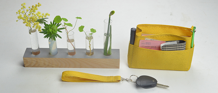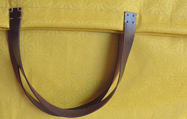 La toile damassée enduite que nous avons séléctionnée est d’une très belle qualité, son enduction fine et mate est presque invisible, le fait que la toile soit enduite la rend imperméable mais aussi permet de la couper bord franc, ce qui donne de belles finitions bien nettes. Son motif traditionnel japonais “Asanoha” nous a inspiré les noms des kits.