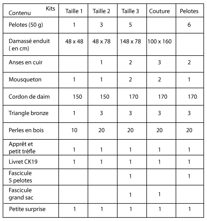 Et pour mieux visualiser les contenus de chacun des kits, nous vous avons préparé un petit tableau: