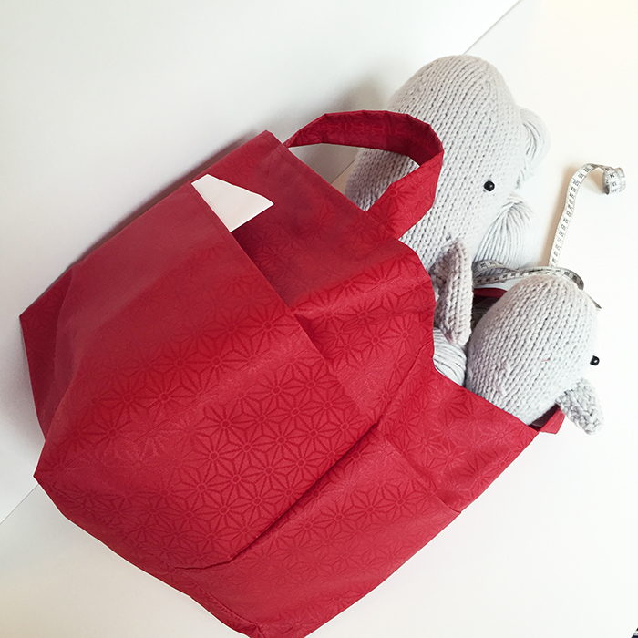 - OU un Jumbo sac (il consomme pratiquement tout le tissu du T3). Il est vraiment très grand et plein de poches, 6 grandes à l’extérieur, 2 à l’intérieur. Il peut facilement contenir 50 pelotes pour vous donner une idée de son volume. ( les crocheteuses et tricoteuses compulsives comprendront) Pensé pour stocker les encours, les laines qui vont avec, les tutos et livrets dans les poches, le petit matos dans les poches intérieures, etc. Bref, le sac dont nous avions BESOIN