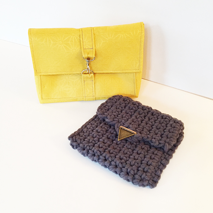 Le kit Couture contient 2 mousquetons, si vous réalisez tous les projets il vous faudra vous en procurer un en mercerie ou inventer un autre système de fermeture (bouton par exemple), d’ou le “presque”.