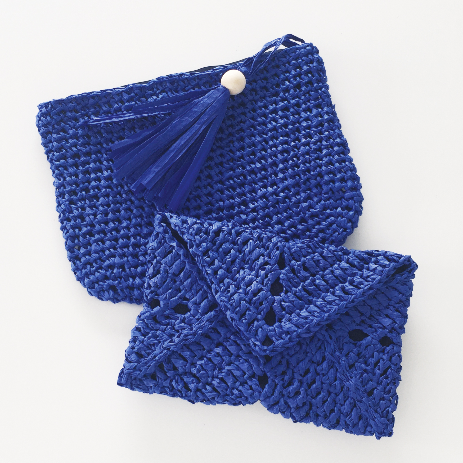 un kit pour réaliser rapidement une jolie pochette zippée en papier (2 pelotes papier, le crochet, le zip, la doublure et bien sûr le fascicule d’explications).