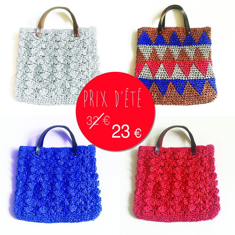 - Kit sac multicolore : le sac jacquard au crochet avec les superbes anses en cuir qui remporte un beau succès (et ça nous fait drôlement plaisir),