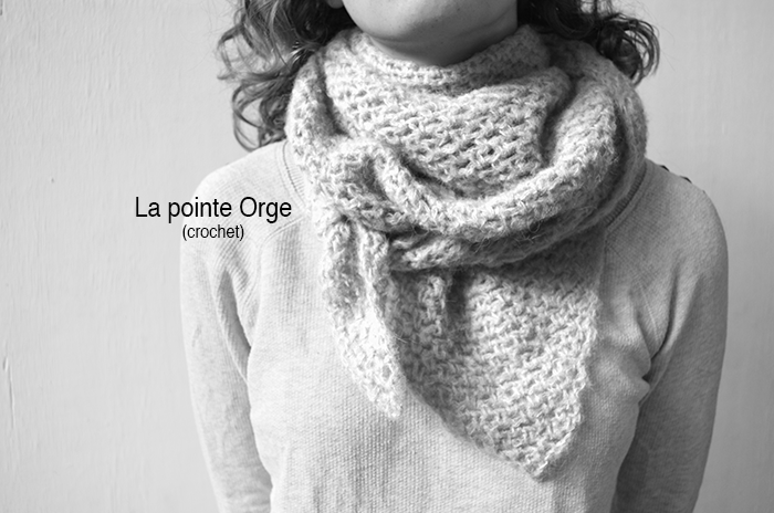 - la pointe Orge au crochet niveau « normal » crochet 8 mm, fil en double