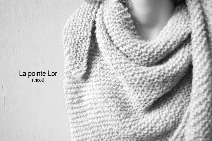 - la pointe Lor au tricot niveau « normal » (nouveau modèle au point mousse inspiré du CK7, vraiment simple à tricoter, très grande) fil en double, aiguille 8