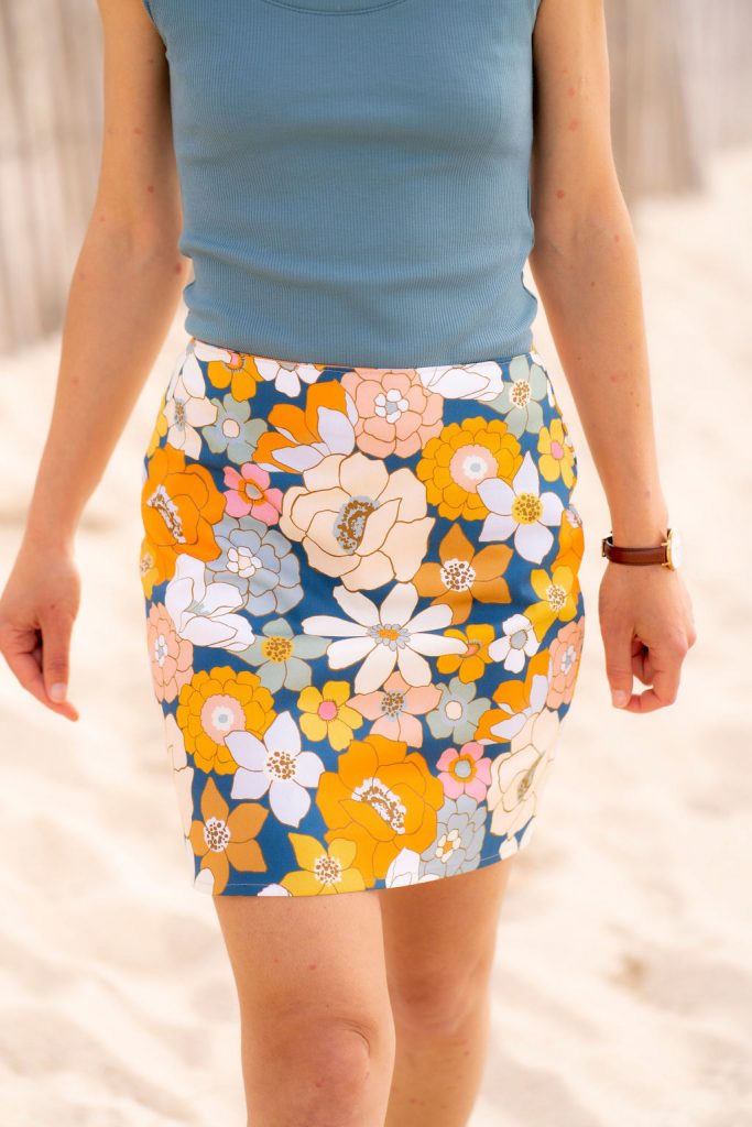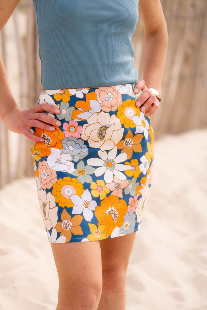 Avec ce kit vous réaliserez la jupe Lauren dans une très jolie toile de coton à l’imprimé fleuri estival, une jupe droite aux multiples variations. Cet indispensable de la garde-robe se décline pour vous offrir la possibilité de faire VOTRE jupe !